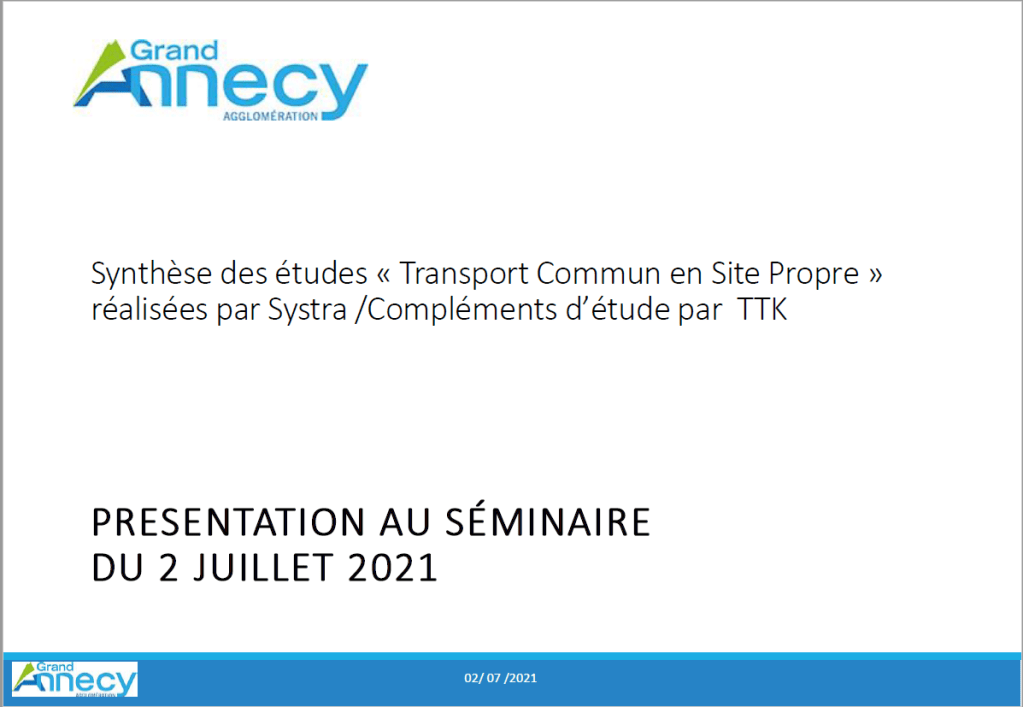 Plusieurs documents complémentaires très détaillés ont été présentés par TTK lors des Comités de Pilotage avec le Grand Annecy. Nous vous les mettons à disposition ci-dessous :